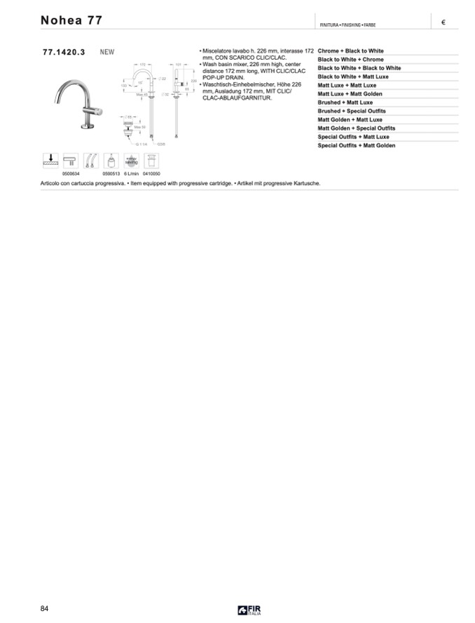 • Miscelatore lavabo h. 226 mm, interasse 172