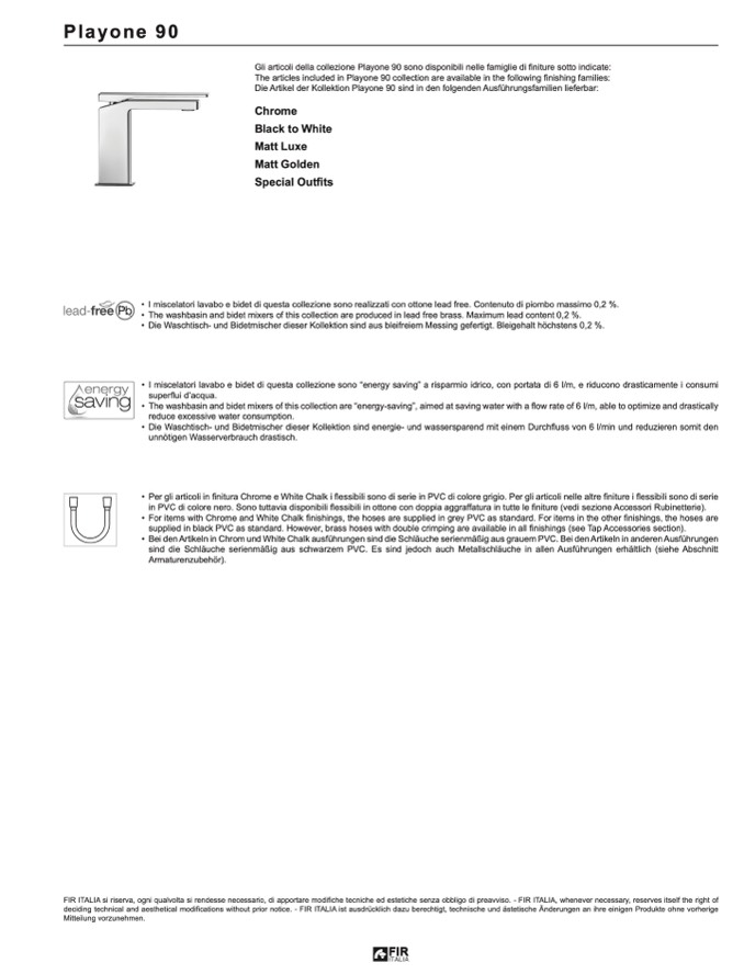 deciding technical and aesthetical modifications without prior notice. - FIR ITALIA ist ausdrücklich dazu berechtigt, technische und ästetische Änderungen an ihre einigen Produkte ohne vorherige