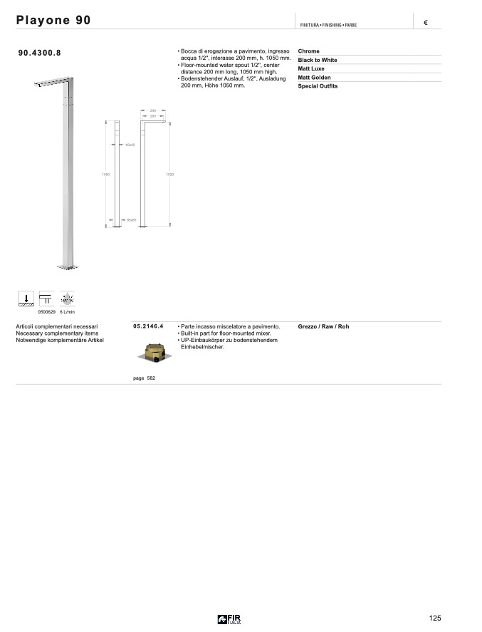acqua 1/2'', interasse 200 mm, h. 1050 mm.