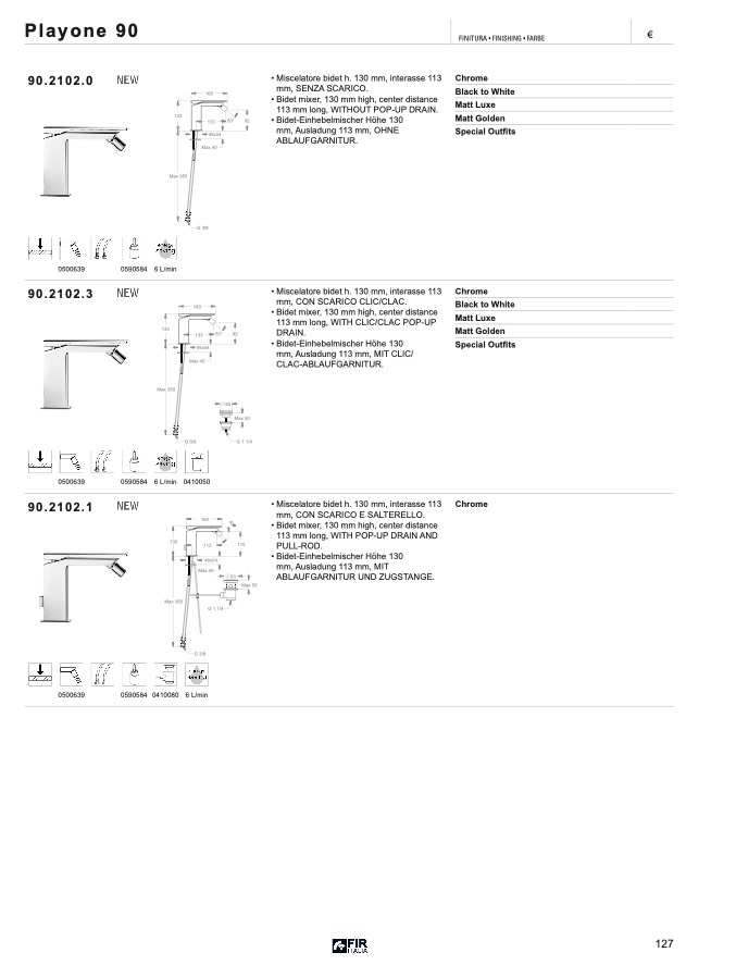 • Miscelatore bidet h. 130 mm, interasse 113