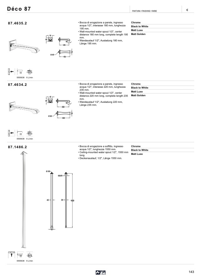 Wandauslauf 1/2'', Ausladung 180 mm,