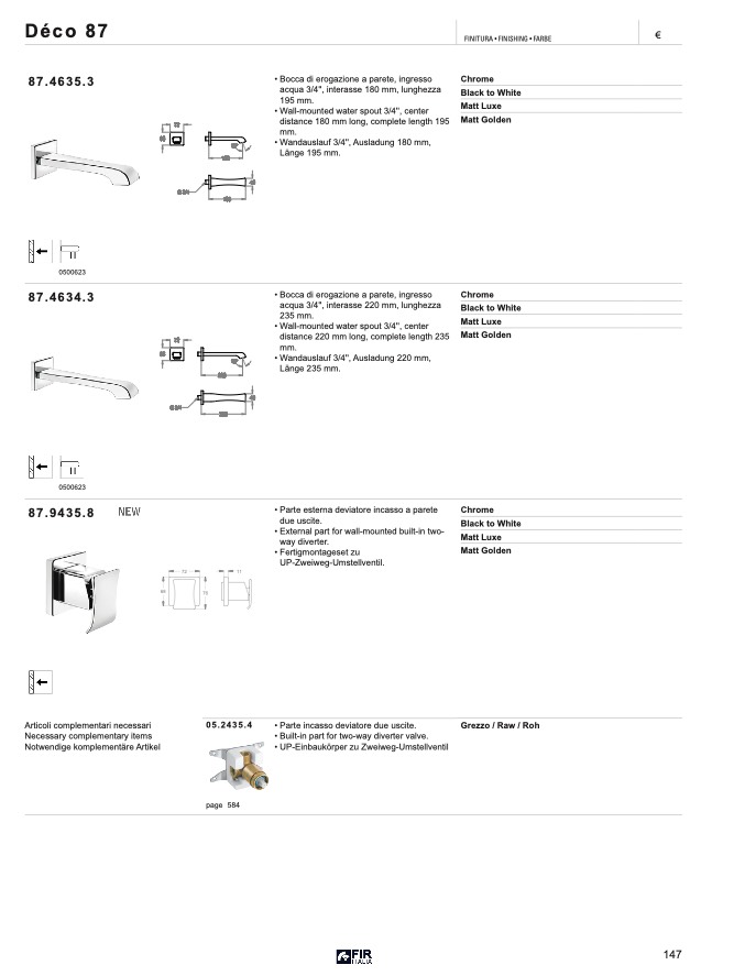 • Wandauslauf 3/4'', Ausladung 180 mm,