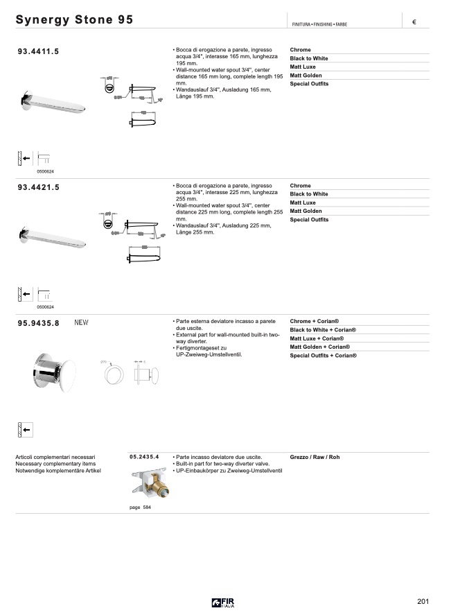 • Wandauslauf 3/4'', Ausladung 225 mm,