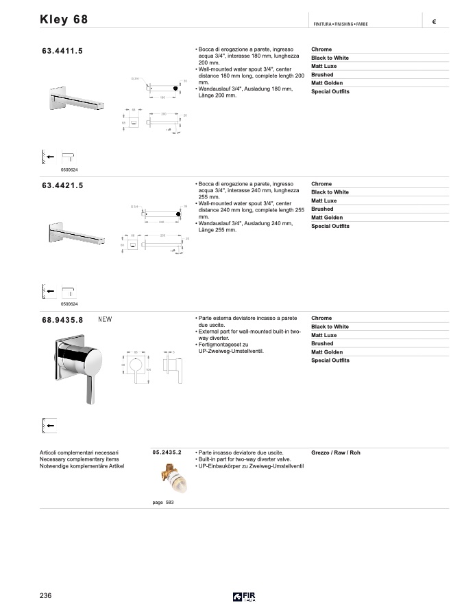 • Wandauslauf 3/4'', Ausladung 240 mm,
