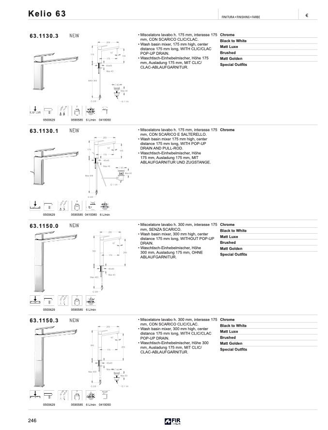 Miscelatore lavabo h. 300 mm, interasse 175