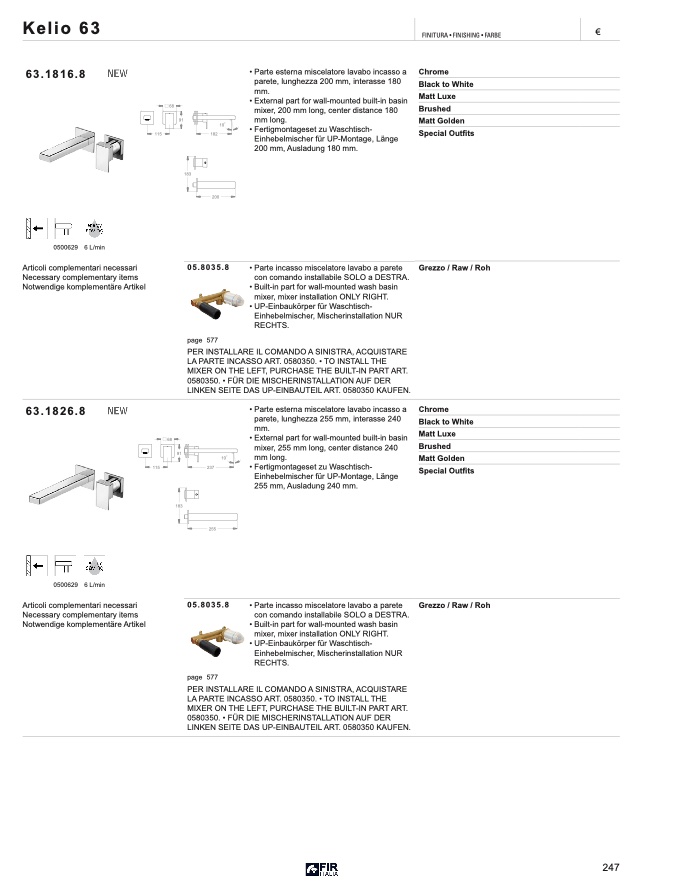 0580350. • FÜR DIE MISCHERINSTALLATION AUF DER
