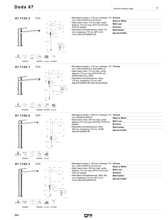 Waschtisch-Einhebelmischer, Höhe 175