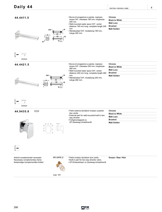 • Wandauslauf 3/4'', Ausladung 240 mm,