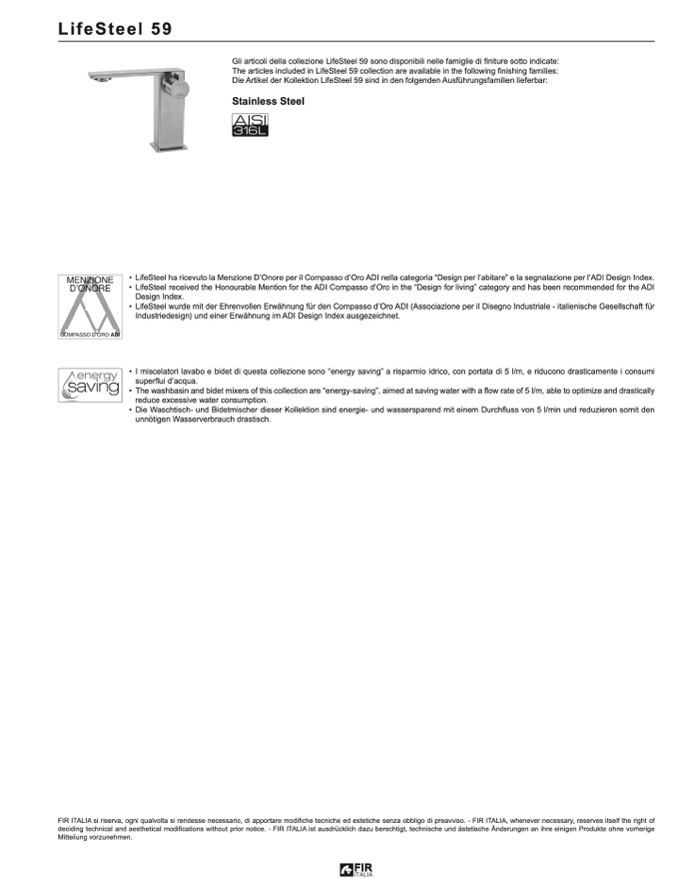 deciding technical and aesthetical modifications without prior notice. - FIR ITALIA ist ausdrücklich dazu berechtigt, technische und ästetische Änderungen an ihre einigen Produkte ohne vorherige