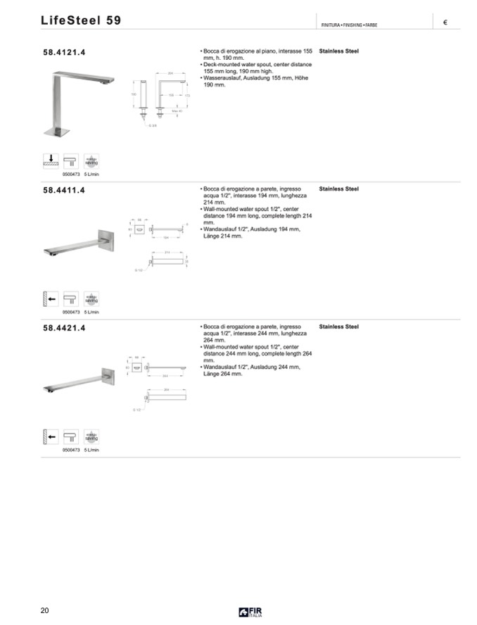 • Wandauslauf 1/2'', Ausladung 194 mm,