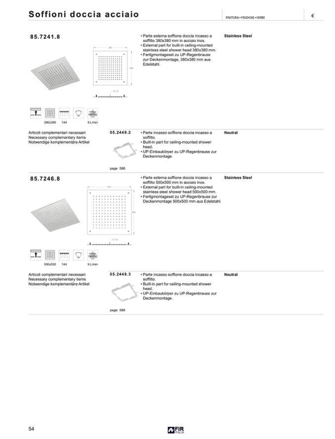stainless steel shower head 380x380 mm.