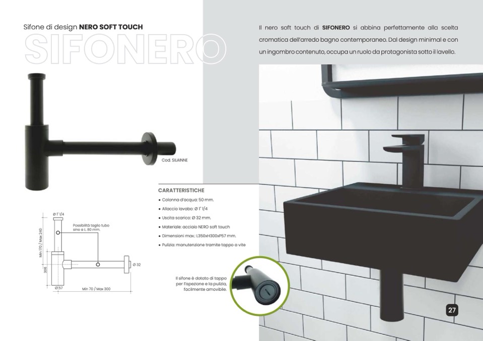 Il nero soft touch di SIFONERO si abbina perfettamente alla scelta