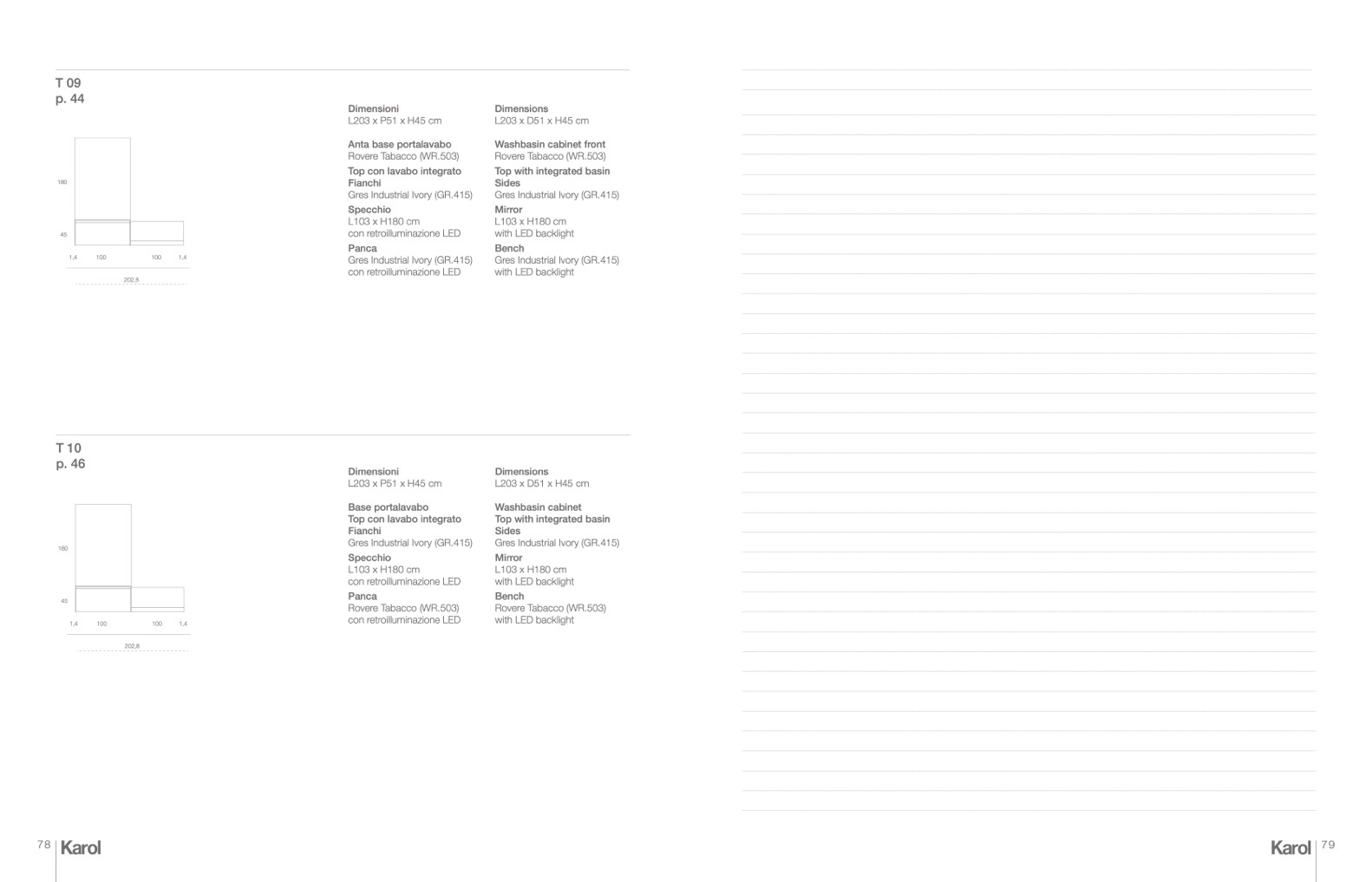 L203 x P51 x H45 cm