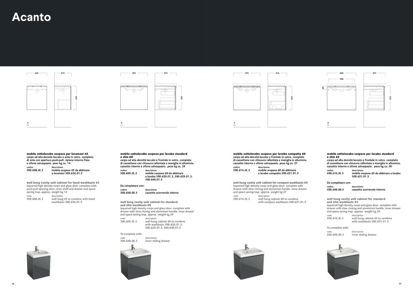 cassetto interno e sifone salvaspazio. peso kg ca. 27
