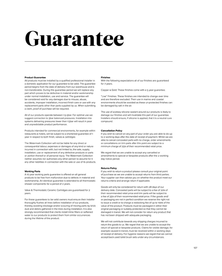 Valve & Thermostatic Ceramic Cartridges are guaranteed for 2