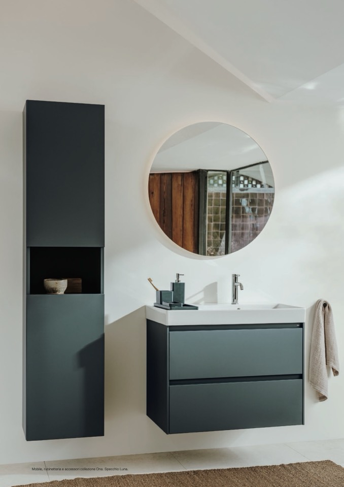 Mobile, rubinetteria e accessori collezione Ona . Specchio Luna .