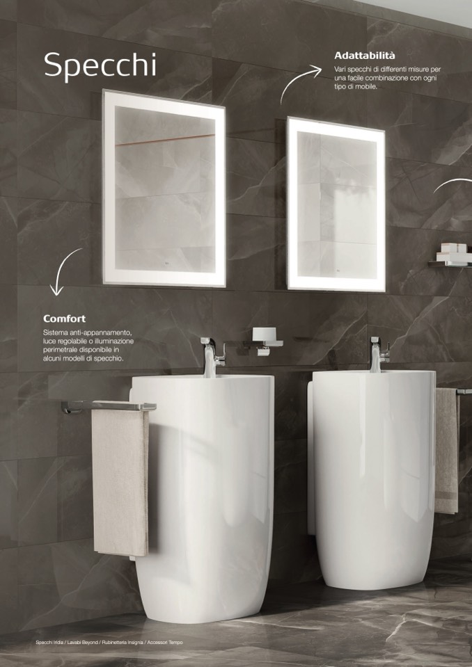 Specchi Iridia / Lavabi Beyond / Rubinetteria Insignia / Accessori Tempo