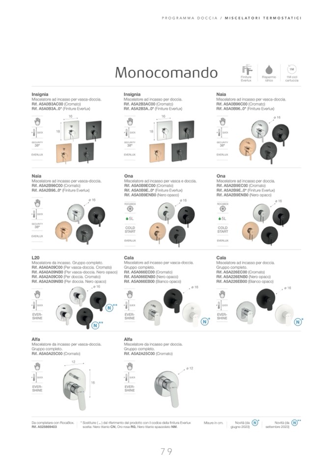 * Sostituire ( .. ) del riferimento del prodotto con il codice della finitura Everlux