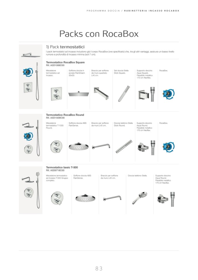 I pack termostatici ad incasso includono già il corpo RocaBox (ove specificato) che, tra gli altri vantaggi, assicura un basso livello