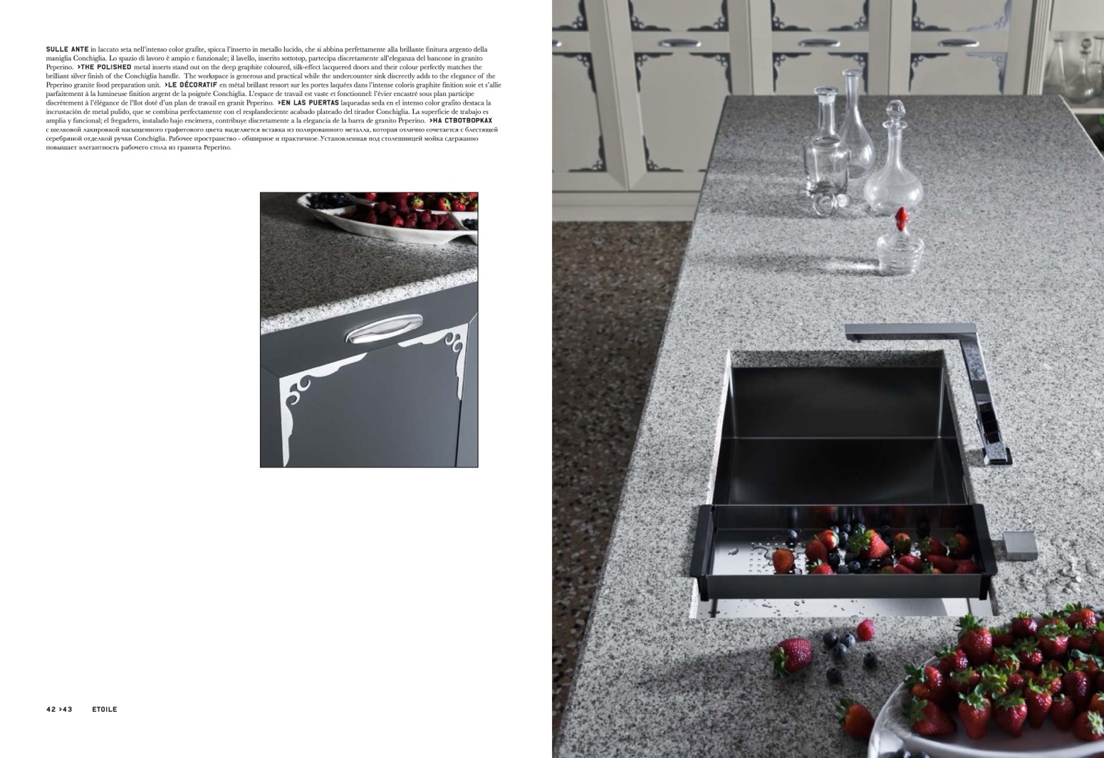 brilliant silver finish of the Conchiglia handle. The workspace is generous and practical while the undercounter sink discreetly adds to the elegance of the