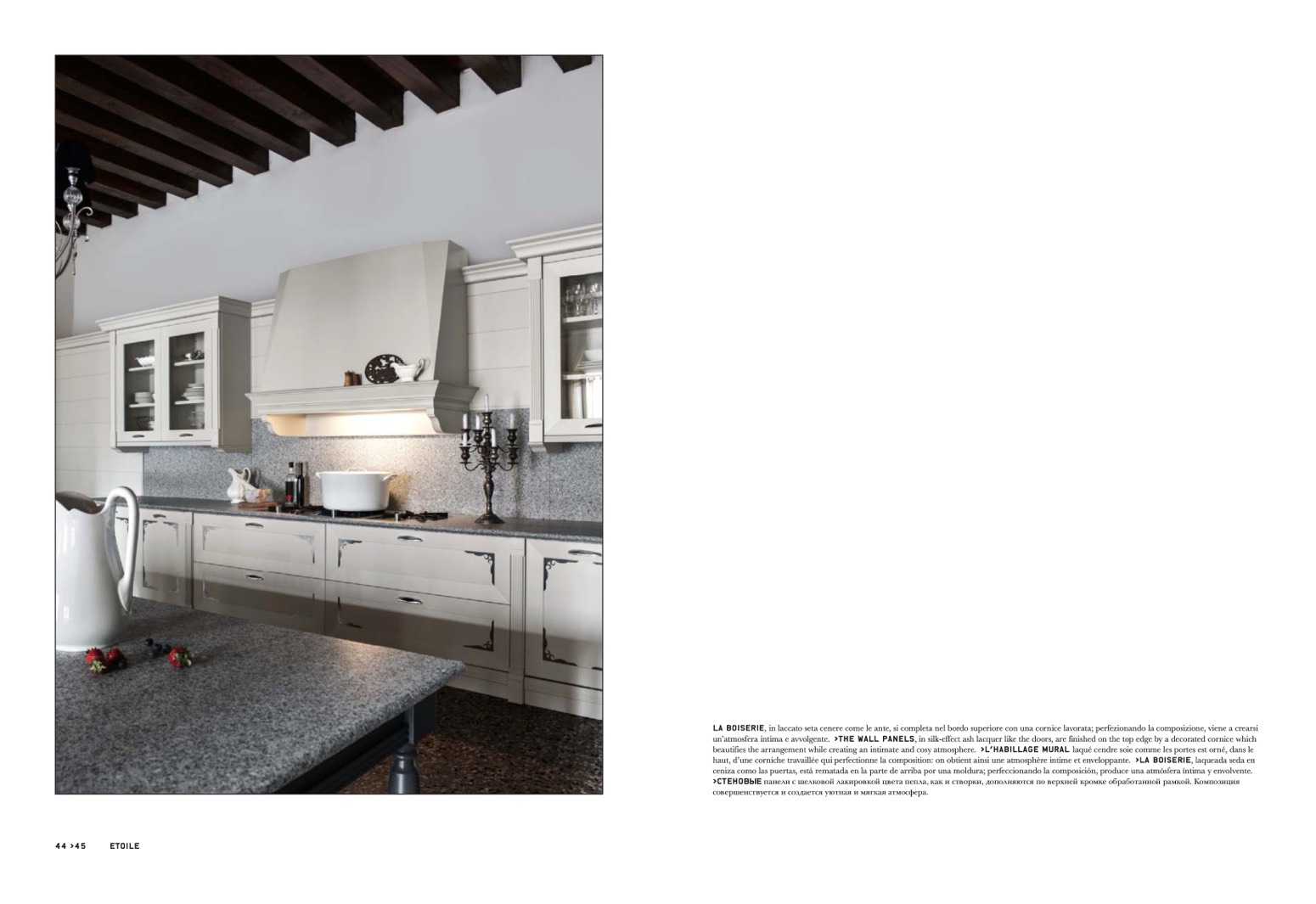 панели с шелковой лакировкой цвета пепла, как и створки, дополняются по верхней кромке обработанной рамкой. Композиция