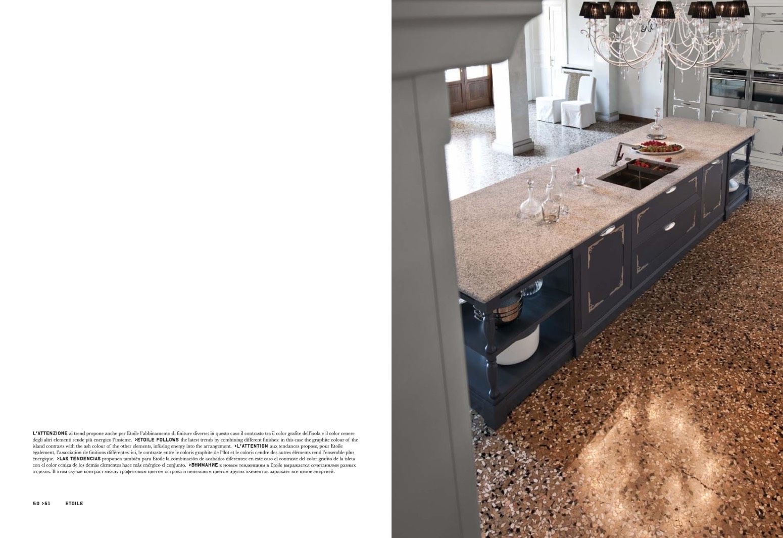 énergique. >Las tendencias proponen también para Etoile la combinación de acabados diferentes: en este caso el contraste del color grafito de la isleta