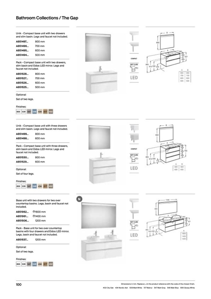 434 Nordic Ash 509 Matt White 517 Walnut 547 Matt Grey 548 Matt Blue 806 Glossy White