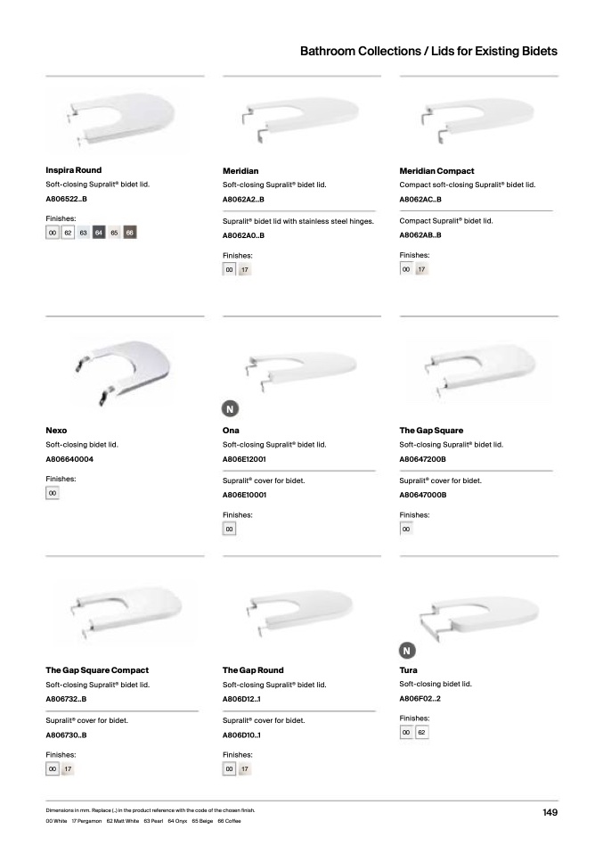 00 White 17 Pergamon 62 Matt White 63 Pearl 64 Onyx 65 Beige 66 Coffee