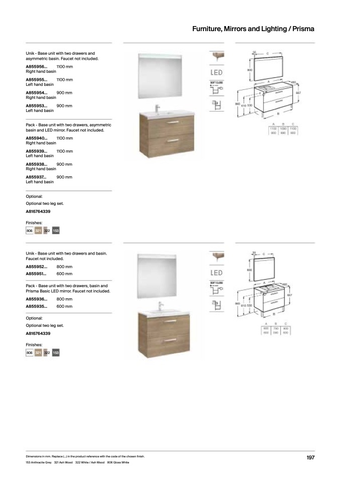 153 Anthracite Grey 321 Ash Wood 322 White / Ash Wood 806 Gloss White