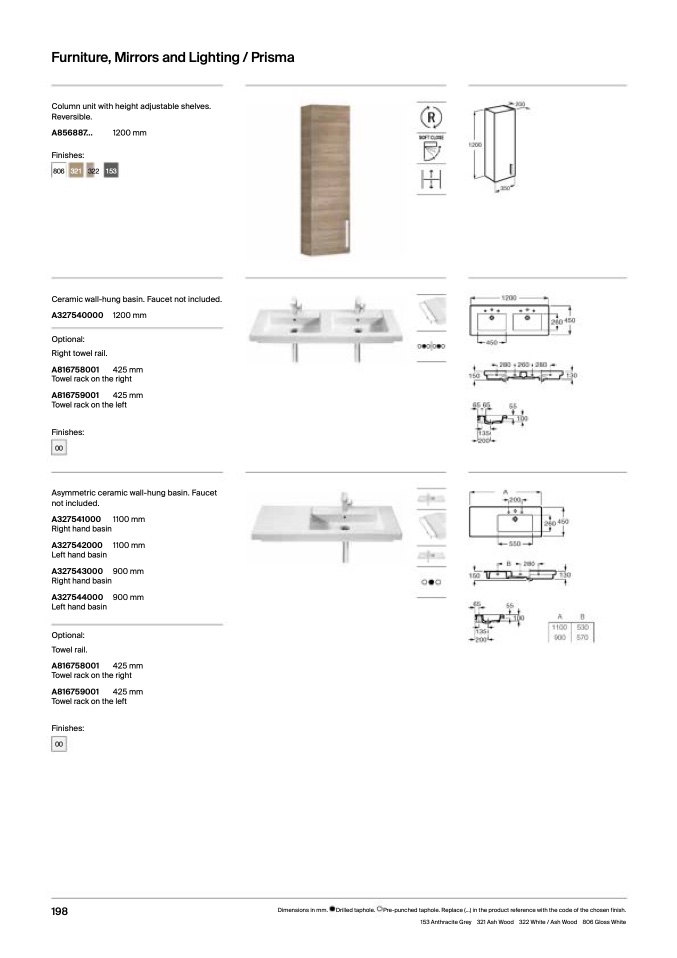 153 Anthracite Grey 321 Ash Wood 322 White / Ash Wood 806 Gloss White