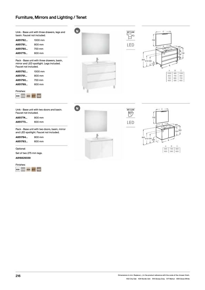 402 City Oak 434 Nordic Ash 516 Glossy Grey 517 Walnut 806 Gloss White