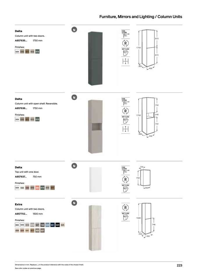 Dimensions in mm. Replace (...) in the product reference with the code of the chosen finish.