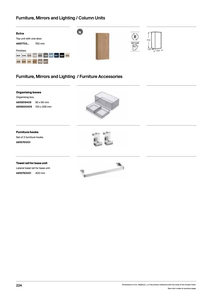 Dimensions in mm. Replace (...) in the product reference with the code of the chosen finish.