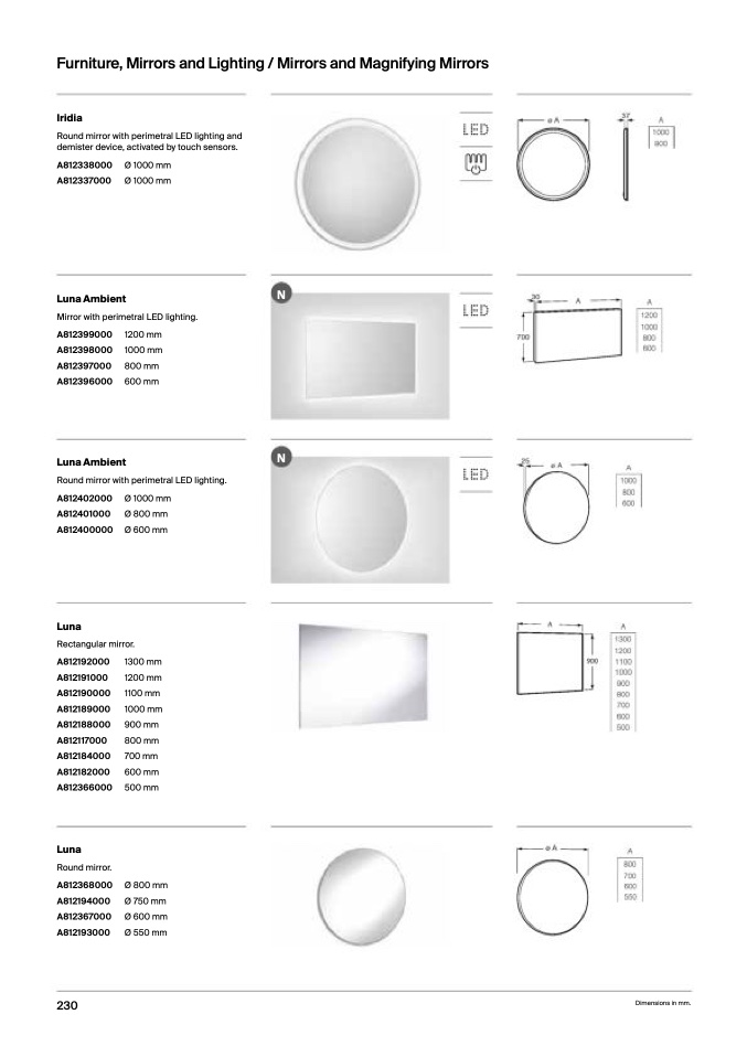 Round mirror with perimetral LED lighting and