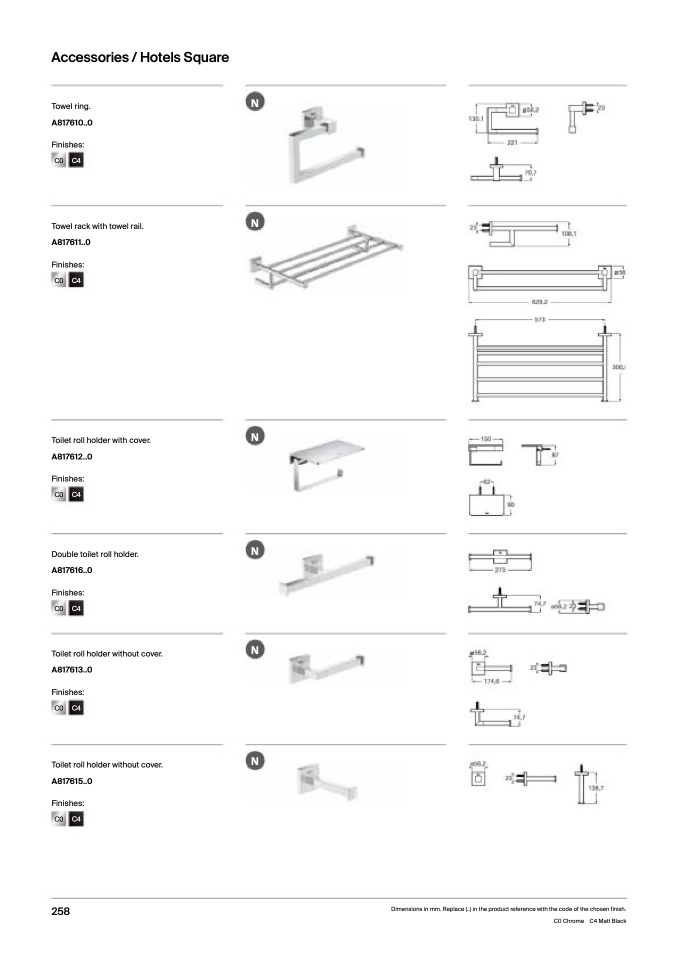 Dimensions in mm. Replace (..) in the product reference with the code of the chosen finish.