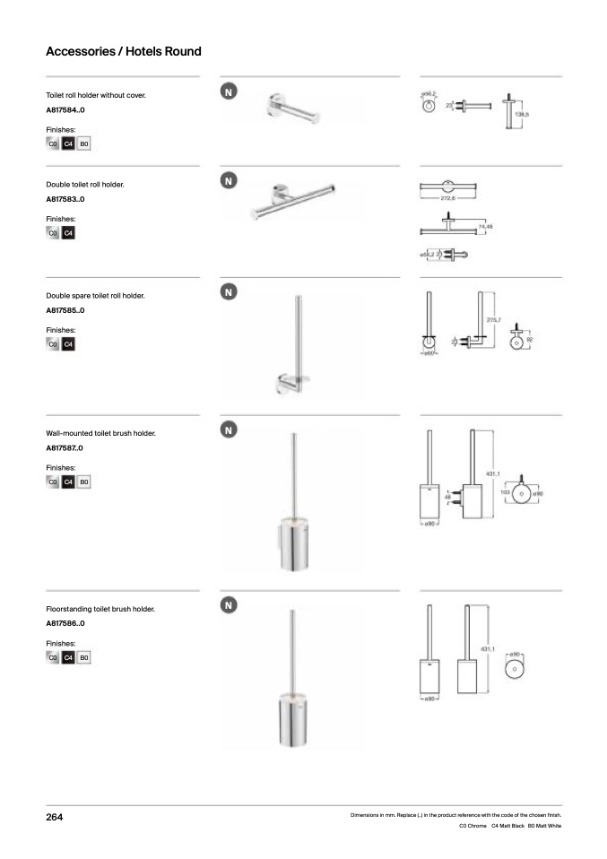 Dimensions in mm. Replace (..) in the product reference with the code of the chosen finish.