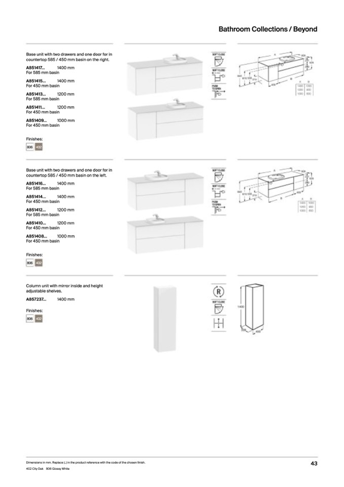 Dimensions in mm. Replace (..) in the product reference with the code of the chosen finish.