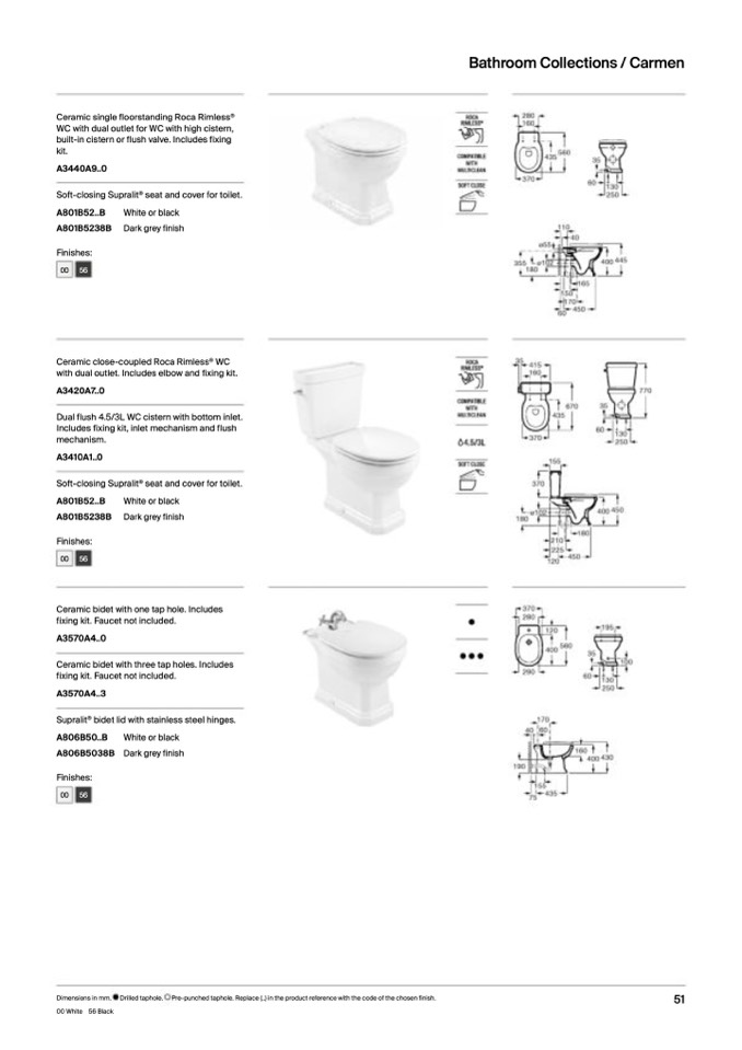 Drilled taphole. Pre-punched taphole. Replace (..) in the product reference with the code of the chosen finish.
