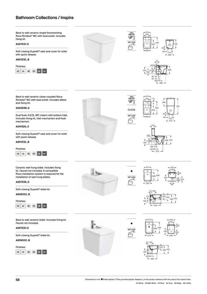 00 White 62 Matt White 63 Pearl 64 Onyx 65 Beige 66 Coffee