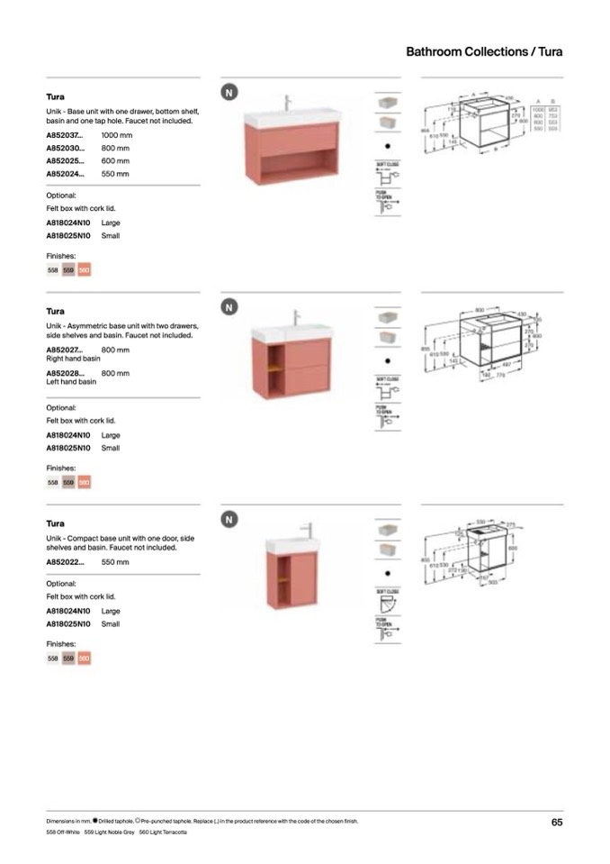 Pre-punched taphole. Replace (..) in the product reference with the code of the chosen finish.