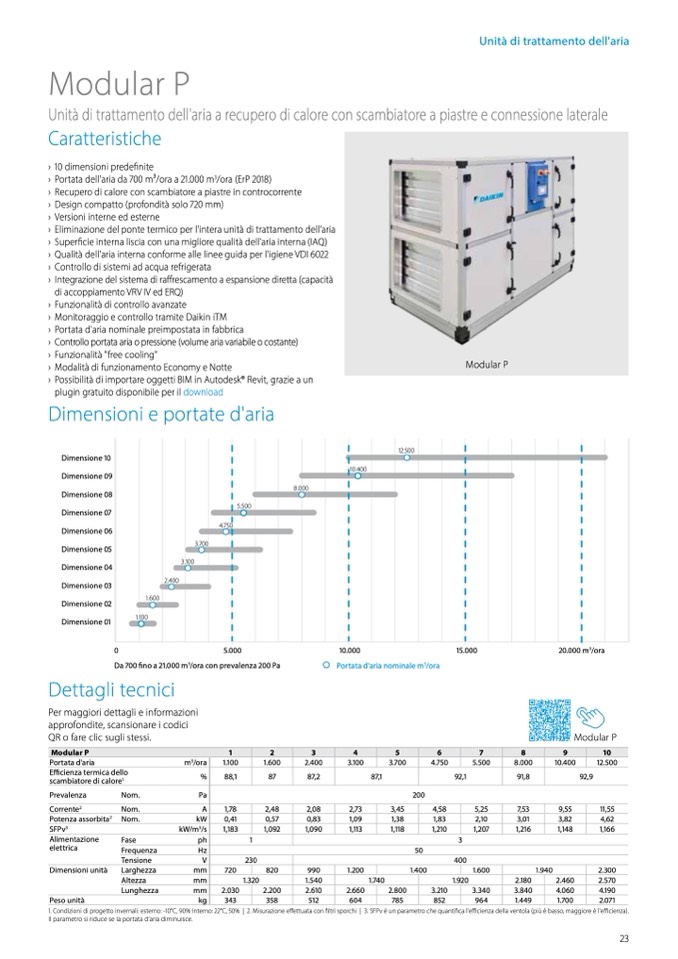 1. Condizioni di progetto invernali: esterno: -10°C, 90% Interno: 22°C, 50% | 2. Misurazione effettuata con filtri sporchi | 3. SFPv è un parametro che quantifica l'efficienza della ventola (più è basso, maggiore è l'efficienza).