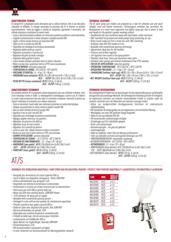 AEROGRAFO PER VERNICIATURA INDUSTRIALE | PAINT SPRAY GUN FOR INDUSTRIAL PAINTING | PISTOLET POUR PEINTURE INDUSTRIELLE | LACKIERPISTOLE FÜR INDUSTRIELLE LACKIERUNG