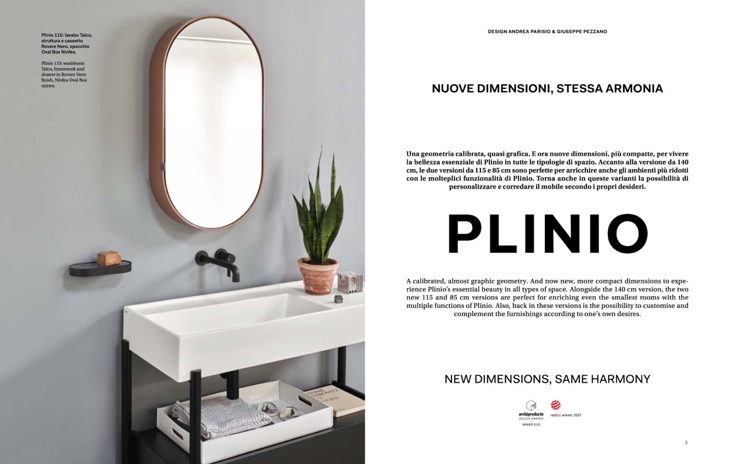 rience Plinio’s essential beauty in all types of space. Alongside the 140 cm version, the two