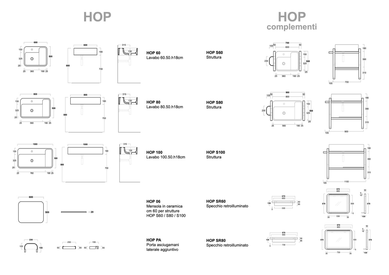 Metal frame cm 110 for console HOP 60 complete with HOP PA towel rail