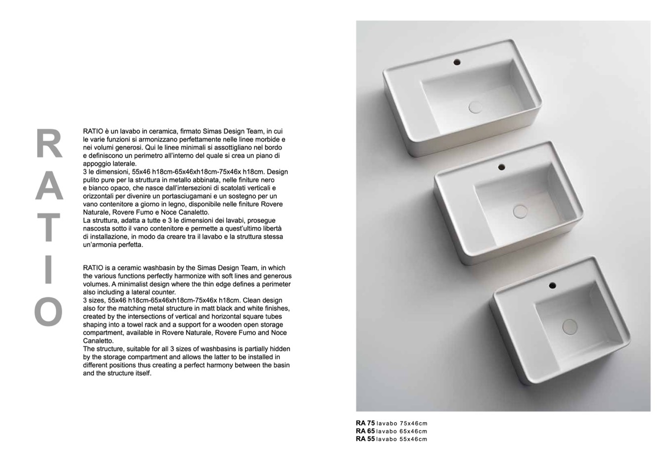 RATIO is a ceramic washbasin by the Simas Design Team, in which