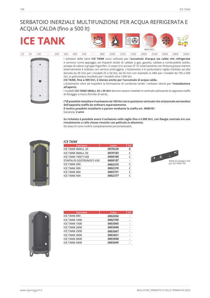 I modelli ICE TANK SMALL 25 e 50 litri devono essere installati in verticale utilizzando le apposite staffe