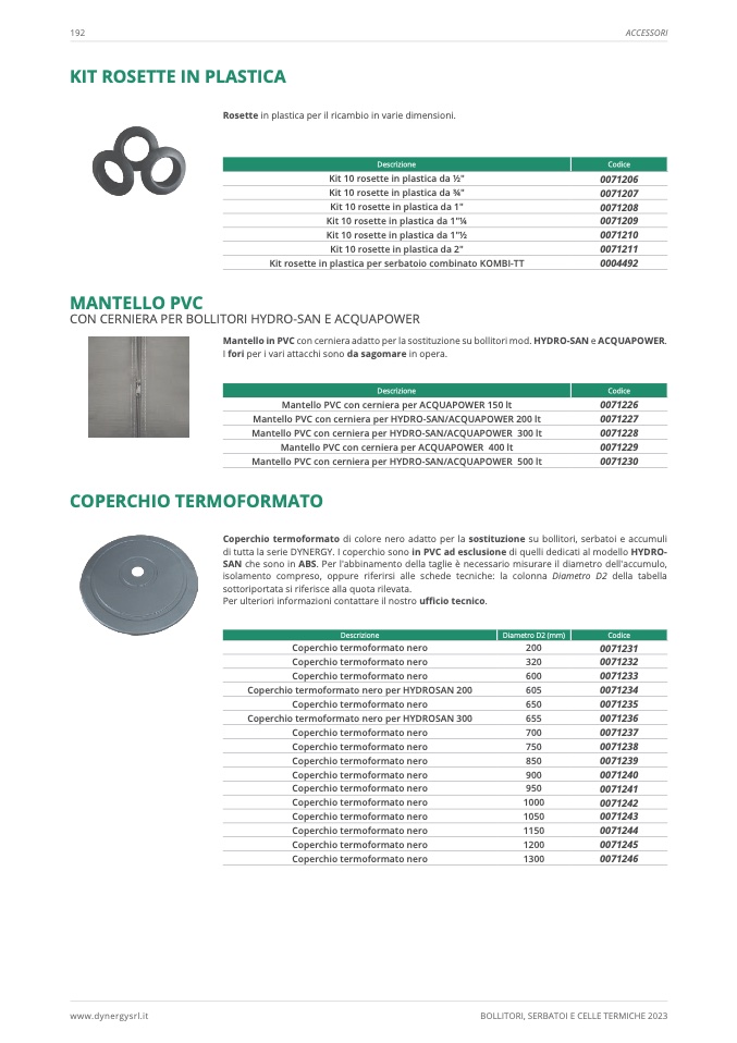 di tutta la serie DYNERGY. I coperchio sono in PVC ad esclusione di quelli dedicati al modello HYDRO-