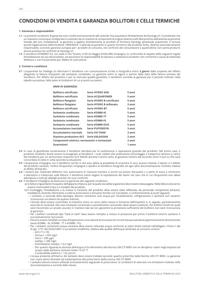 1.1 Le presenti condizioni di garanzia sono rivolte esclusivamente alle aziende che acquistano direttamente da Dynergy srl. Considerato che