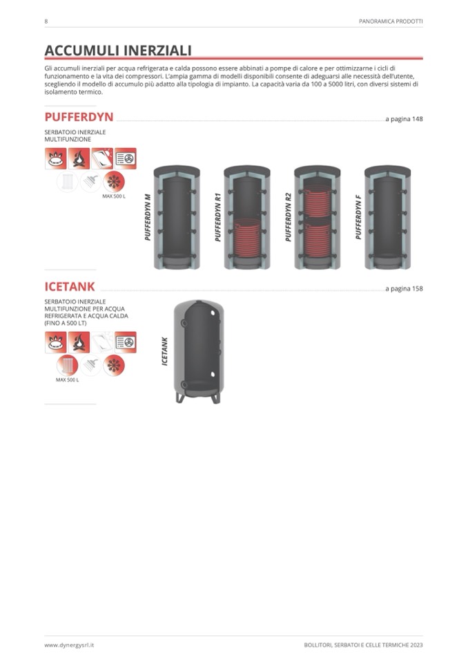 scegliendo il modello di accumulo più adatto alla tipologia di impianto. La capacità varia da 100 a 5000 litri, con diversi sistemi di