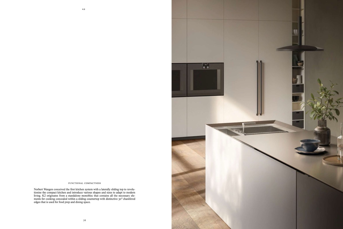 Norbert Wangen conceived the first kitchen system with a laterally sliding top to revolu-
